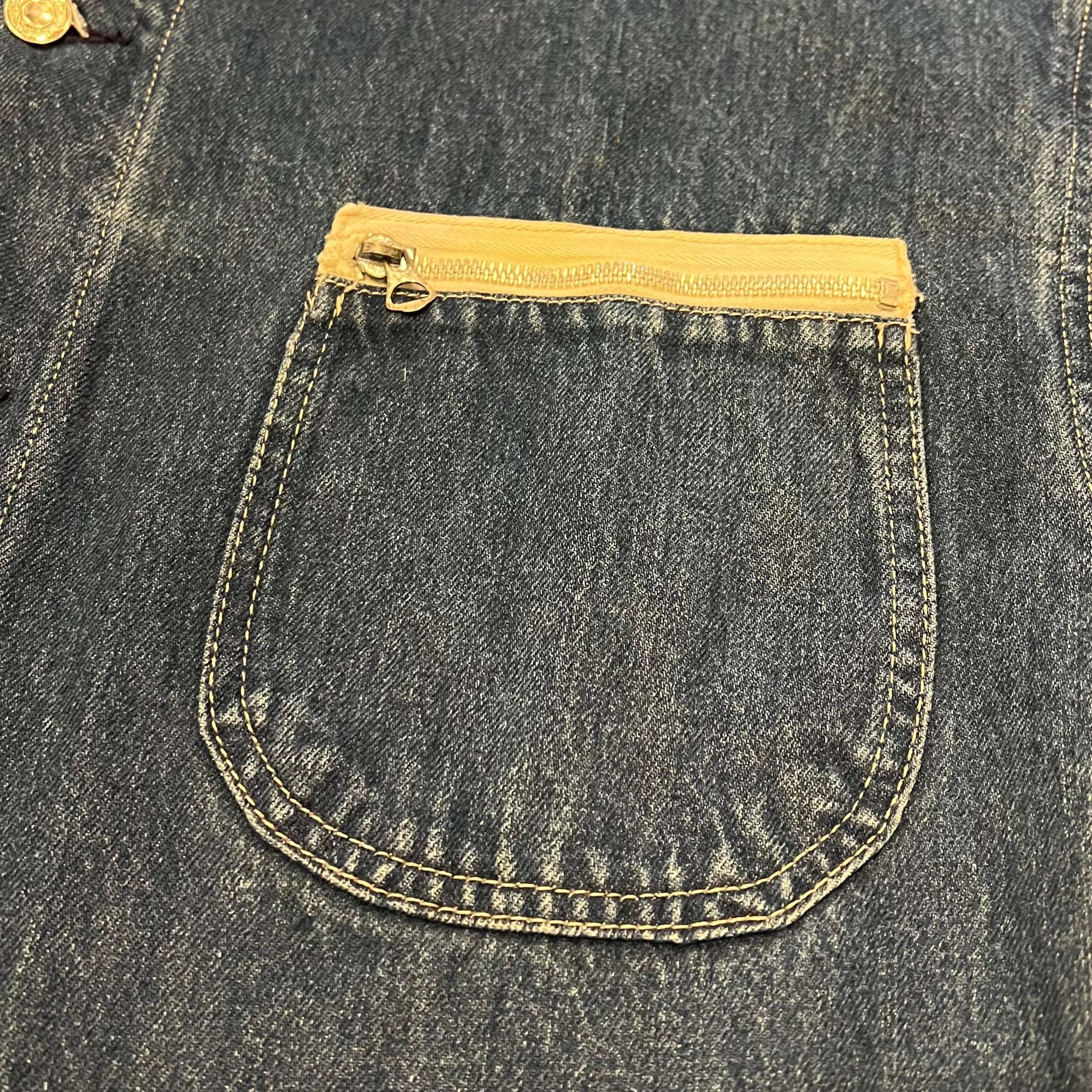 所々に色落ちはございますがまだまだ濃いのでこれからの色落ちも楽しめるかと。