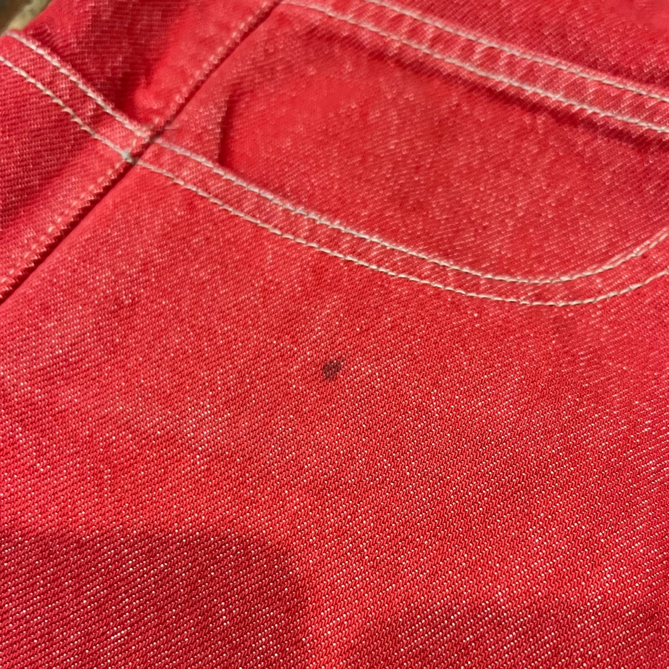 先染め赤のデニムめっちゃかっこいいですが伝わりますかね。